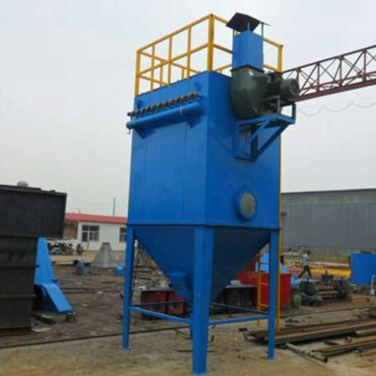 袋式除塵器主要組成有:上箱體(凈氣室)、中箱體(袋室)、灰斗及框架、脈沖清灰系統(tǒng)、排灰系統(tǒng)。
