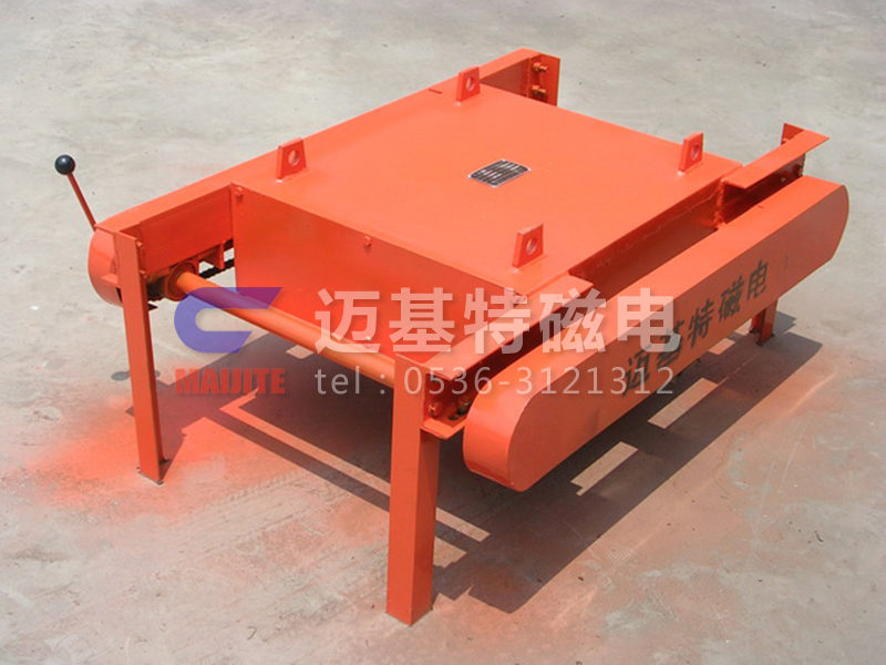RCYP系列手動缷鐵式永磁除鐵器是采用高性能強磁材料作勵磁的永磁除鐵器基礎(chǔ)上增添了鏈條、刮板、 手柄等缷鐵裝置,通過手搖作動力帶動鏈條上刮板將吸附在除鐵器上的鐵磁性物質(zhì)刮出,這樣省去了人工用手清理鐵塊的麻煩。產(chǎn)品具有磁場強、吸力大、無需電能、安裝使用方便等特點。